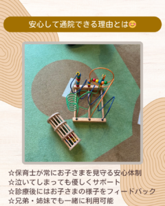 当院では保育士が常駐し、お子さまを安全にお預かりできる環境を整えています。