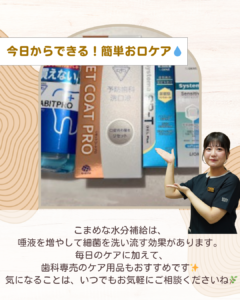 口腔内の乾燥を防ぐために、こまめに水を飲むのがいいとされています!